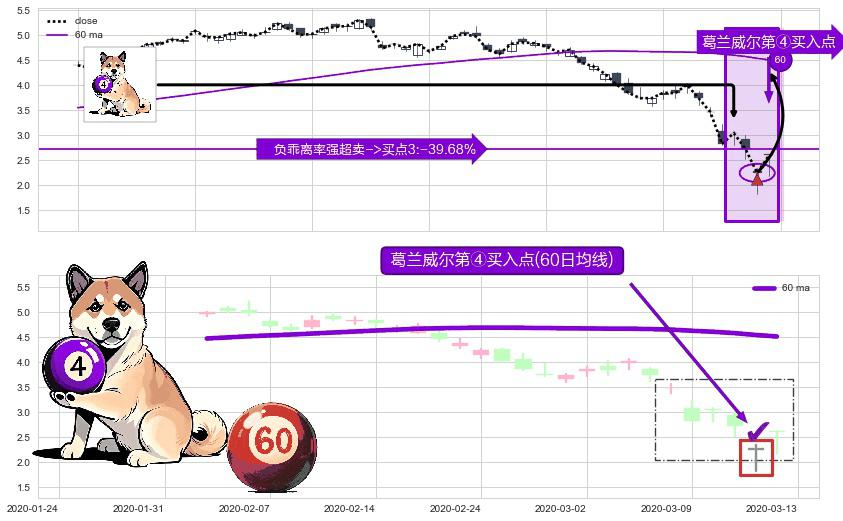 ⚀ 2020-03-12-日显现 葛兰威尔均线 60日均线 第④买入点 下降趋势均值回复的短线反弹信号,后市看涨,买进信号