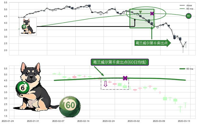 ⚀ 2020-02-20-日显现 葛兰威尔均线 60日均线 第⑥卖出点 走势反转见顶信号,后市看跌,卖出信号