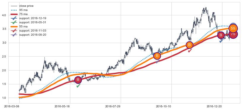 ➢ 发现最优均线组合: 45 , 55 , 75
