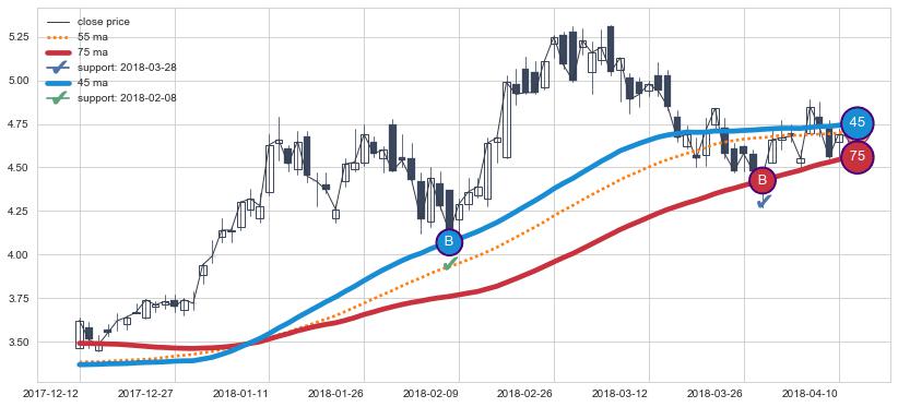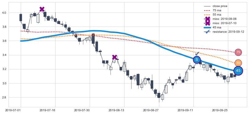 ⚃ 在破位点附近ma走势明显平稳迹象,稍后的走势中ma下垂迹象也出现,信号【可信度中等偏上】