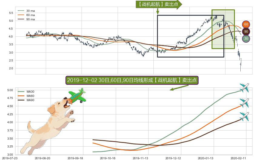 ⚀ 2019-09-26日-2020-02-06日显现 30日-60日-90日均线 【战机起航】卖出点 看空信号,后市看跌,卖出