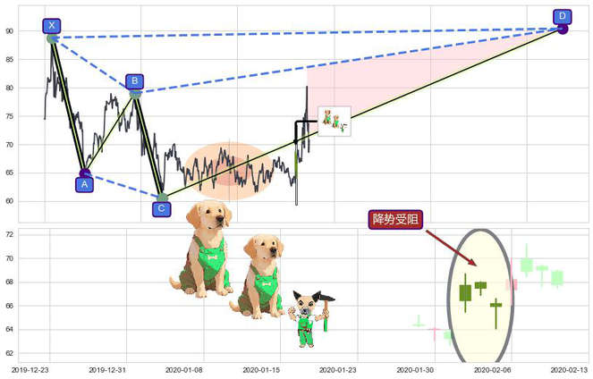 ➣ 未完成【鲨鱼】形态起点X: 2018-01-29, 已到达C点: 2018-12-24, 预测最终D点: 2022-03-18, 共1055交易日