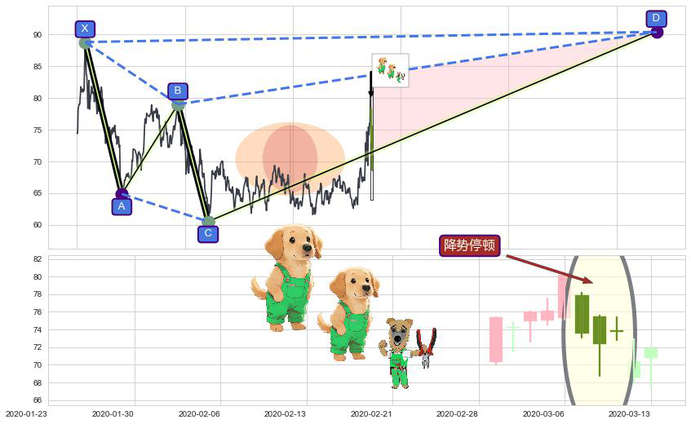 ➣ 谐波鲨鱼:猜想c点下沉击穿越过b点后报复性拉升上涨(均值回复)