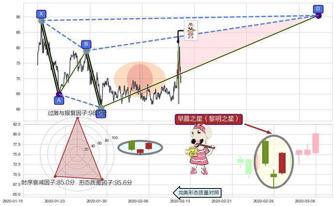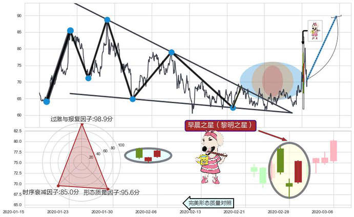 ➢ 🕰 价格走势在2020-02-27至2020-03-02期间形成早晨之星(黎明之星),残存影响值:6.15