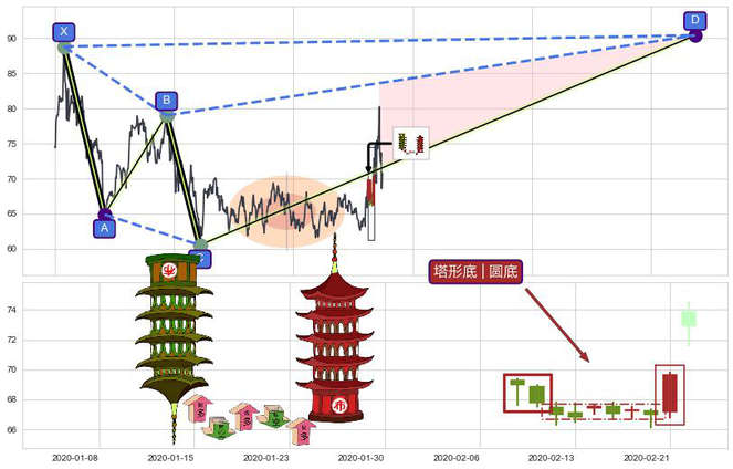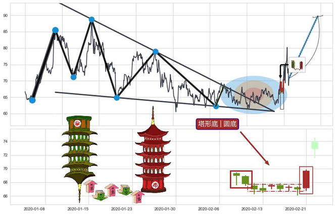 ➢ 🕰 价格走势在2020-02-10至2020-02-21期间形成塔形底 | 圆底,残存影响值:7.08
