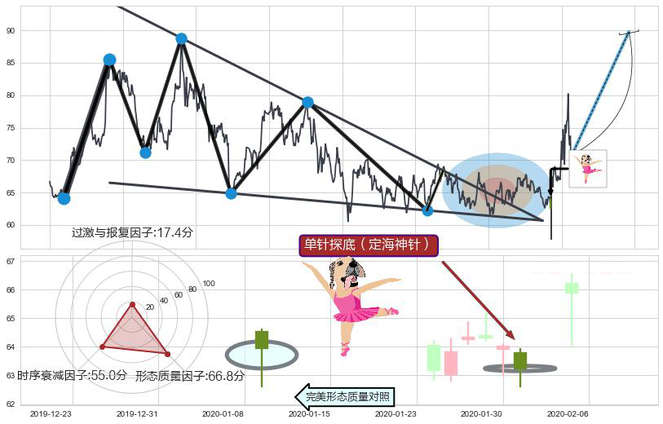 ➢ 🕰 价格走势在2020-01-31至2020-01-31期间形成单针探底(定海神针),残存影响值:2.78