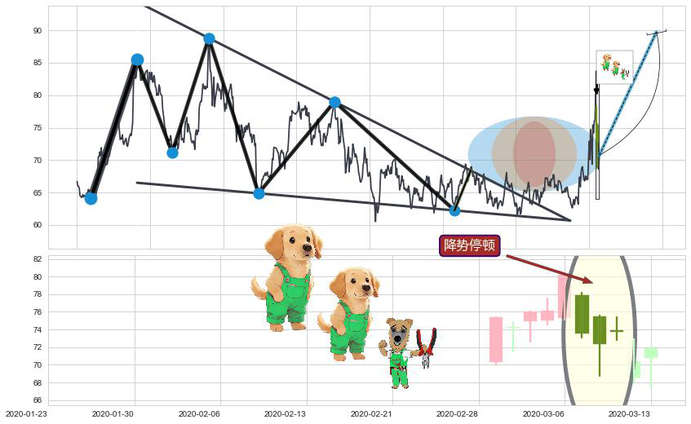 ➢ 🕰 价格走势在2020-03-09至2020-03-11期间形成降势停顿,残存影响值:9.66