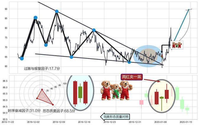 ➢ 🕰 价格走势在2020-01-06至2020-01-08期间形成两红夹一黑,残存影响值:2.21
