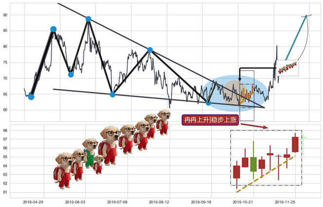 ➢ 🕰 价格走势在2019-10-07至2019-11-25期间形成冉冉上升|稳步上涨,残存影响值:4.19