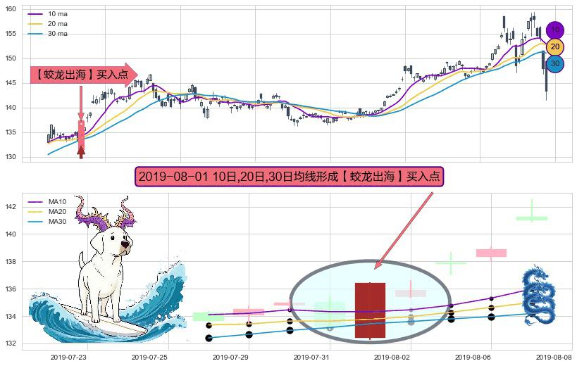 ⚀ 2019-08-01日显现 10日-20日-30日均线 【蛟龙出海】买入点 看多信号,后市看涨,买入
