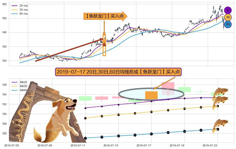 ⚀ 2019-07-17日显现 20日-30日-60日均线 【鱼跃龙门】买入点 看多信号,后市看涨,买入