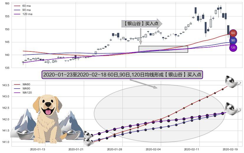 ⚀ 2020-01-24-日至2020-02-18-日显现 60日-90日-120日均线 【银山谷】买入点 看多信号,后市看涨,买入