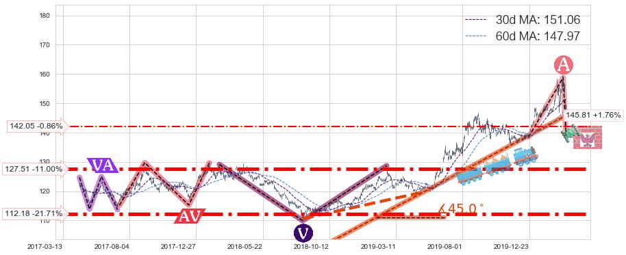 ♘ 支撑价格位142.05,可信任强度43.60%,距离最后交易2020-03-13形成的收盘价格143.28相差 -0.86%
