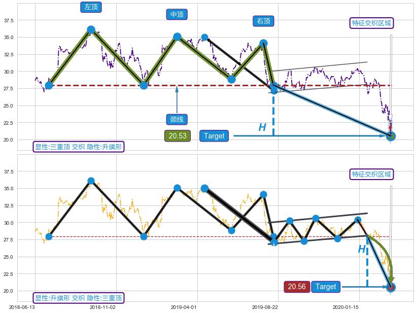 ➣ 【已确认突破】三重顶 起点:2018-06-28,突破点:2019-08-14,形态共284交易日