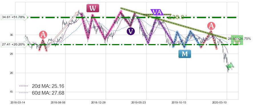 ➣ 最小【反转】第一目标价格→(2020-03-12: 20.53 )