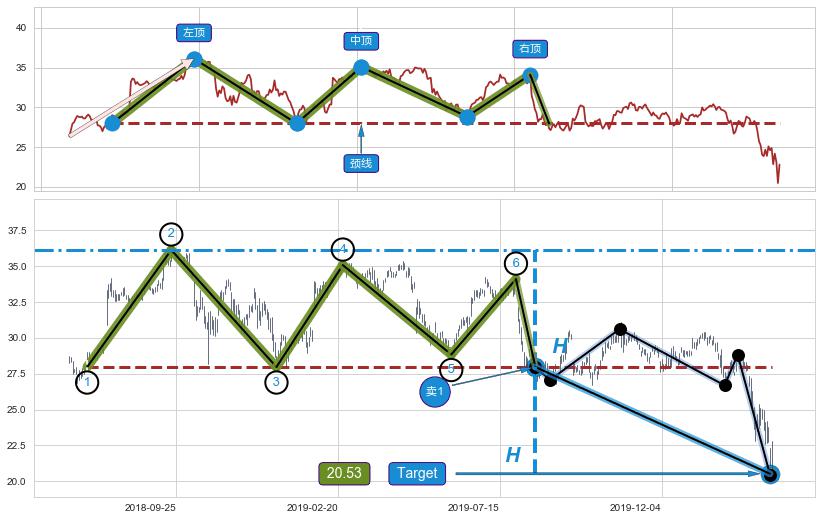 ➢ 【卖1】: 激进型 卖点→(2019-08-14: 27.97 )形成突破三重顶【反转】形态