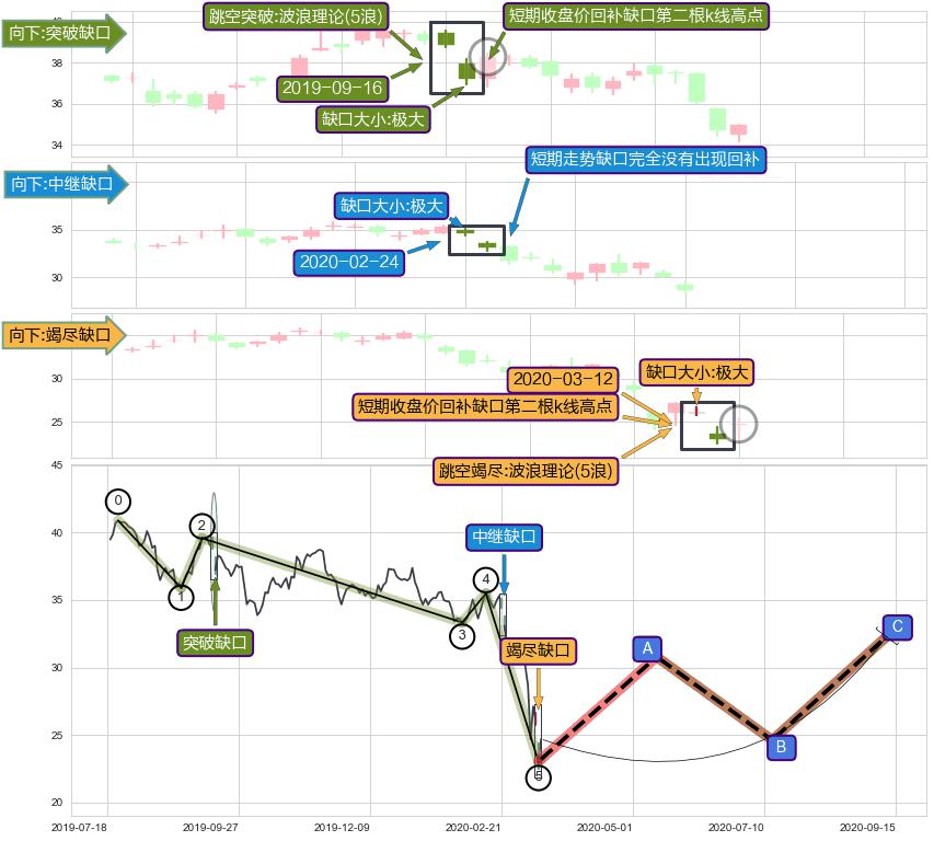 ➢ 2020-03-12形成:向下跳空【竭尽】缺口