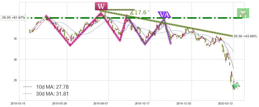 ♘ 阻力价格位39.95,可信任强度89.97%,距离最后交易2020-03-13形成的收盘价格24.71相差 +61.67%