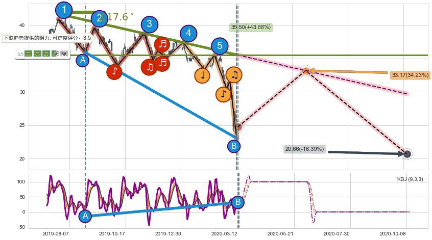 ➢ 预测:2020-06-08,【小幅反弹】稳定目前下跌趋势的前提下,预测价格:33.17
