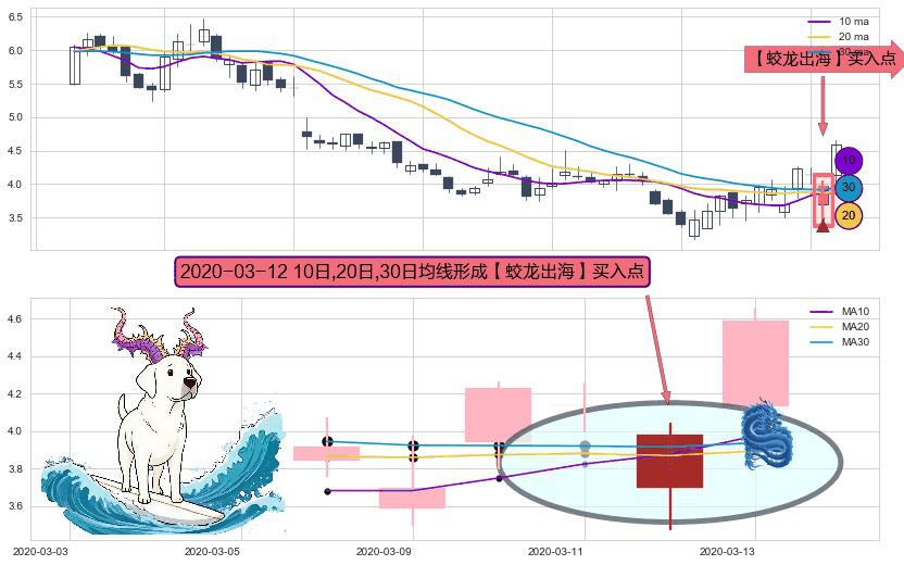形态多维评估: ⚀ 2020-03-12日显现 10日-20日-30日均线 【蛟龙出海】买入点 看多信号,后市看涨,买入