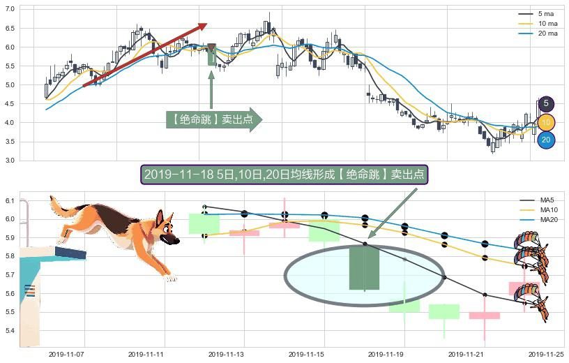形态多维评估: ⚀ 2019-11-18日显现 5日-10日-20日均线 【绝命跳】卖出点 看空信号,后市看跌,卖出