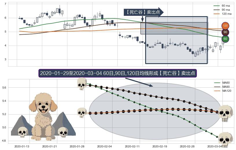形态多维评估: ⚀ 2020-01-30-日至2020-03-04-日显现 60日-90日-120日均线 【死亡谷】卖出点 看空信号,后市看跌,卖出