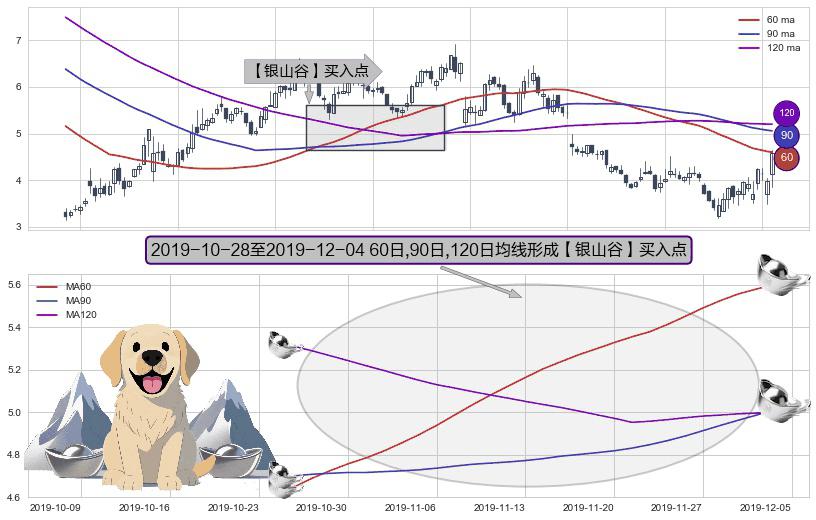 形态多维评估: ⚀ 2019-10-29-日至2019-12-04-日显现 60日-90日-120日均线 【银山谷】买入点 看多信号,后市看涨,买入