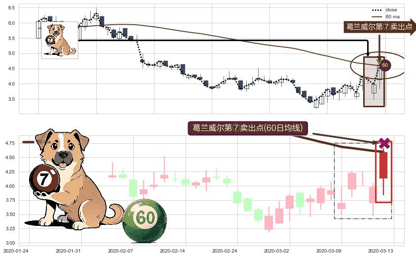 形态多维评估: ⚀ 2020-03-13-日显现 葛兰威尔均线 60日均线 第⑦卖出点 下降趋势的中继信号,后市看跌,卖出信号