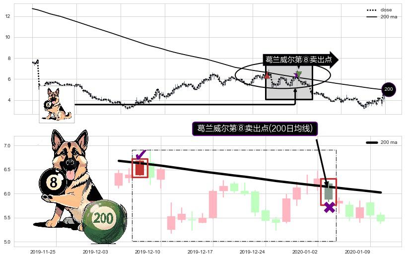 形态多维评估: ⚀ 2020-01-03-日显现 葛兰威尔均线 200日均线 第⑧卖出点 下降趋势的中继信号,后市看跌,卖出信号