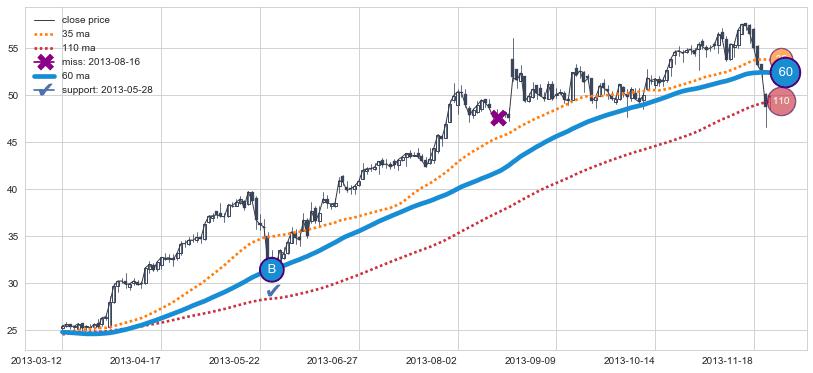 上涨趋势2013-03-12-2013-11-22,均线60确认关键支撑1处