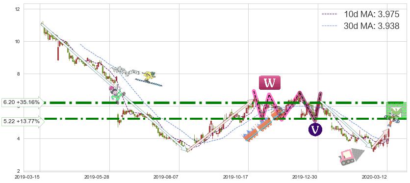 ♘ 阻力价格位6.20,可信任强度89.56%,距离最后交易2020-03-13形成的收盘价格4.59相差 +35.16%