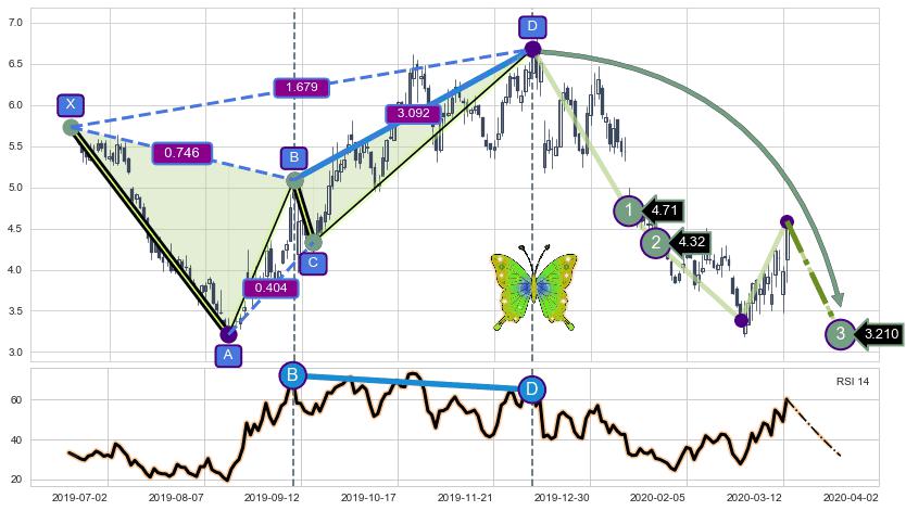 ➣ 已完成【蝴蝶】形态起点X: 2019-06-18, 终点D: 2019-12-06, 共121交易日