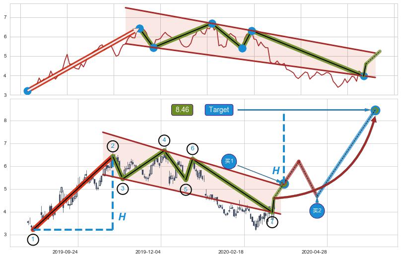 ➣ 最小中继整理涨幅→𝐇: 3.220 (𝐇旗杆的长度:旗杆起点→顶点)