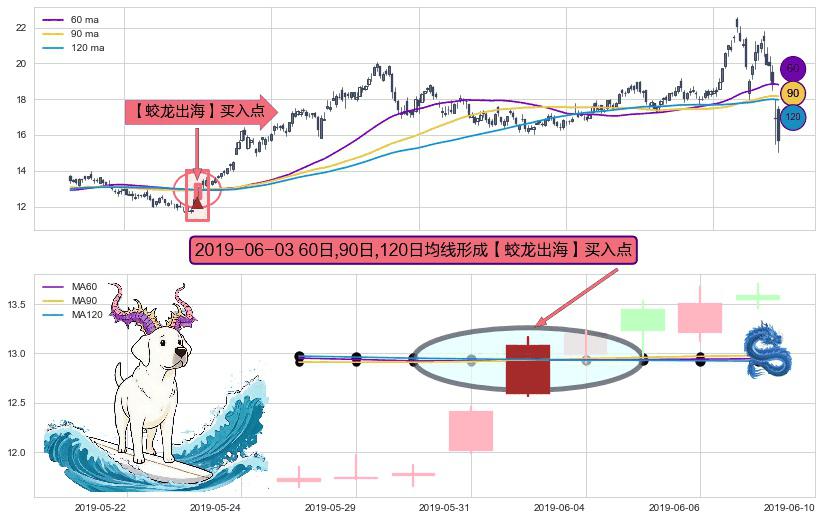 ⚀ 2019-06-03日显现 60日-90日-120日均线 【蛟龙出海】买入点 看多信号,后市看涨,买入