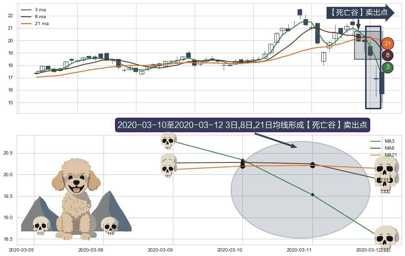 ⚀ 2020-03-11-日至2020-03-12-日显现 3日-8日-21日均线 【死亡谷】卖出点 看空信号,后市看跌,卖出