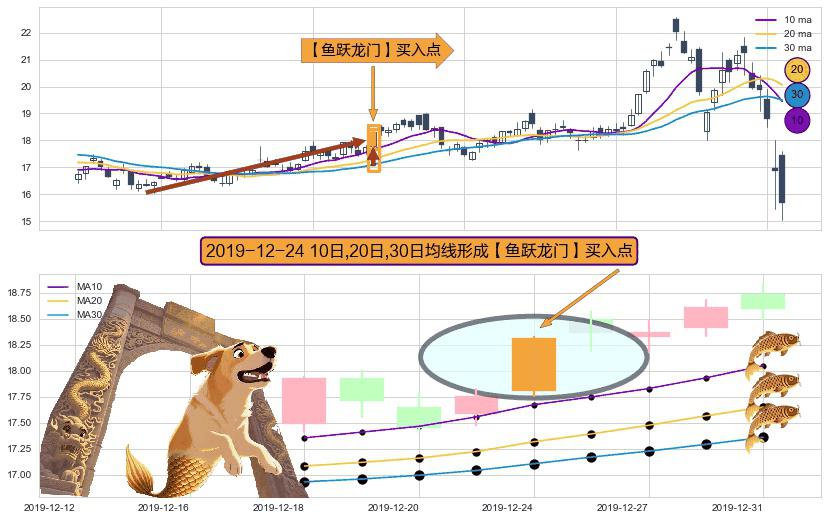 ⚀ 2019-12-24日显现 10日-20日-30日均线 【鱼跃龙门】买入点 看多信号,后市看涨,买入