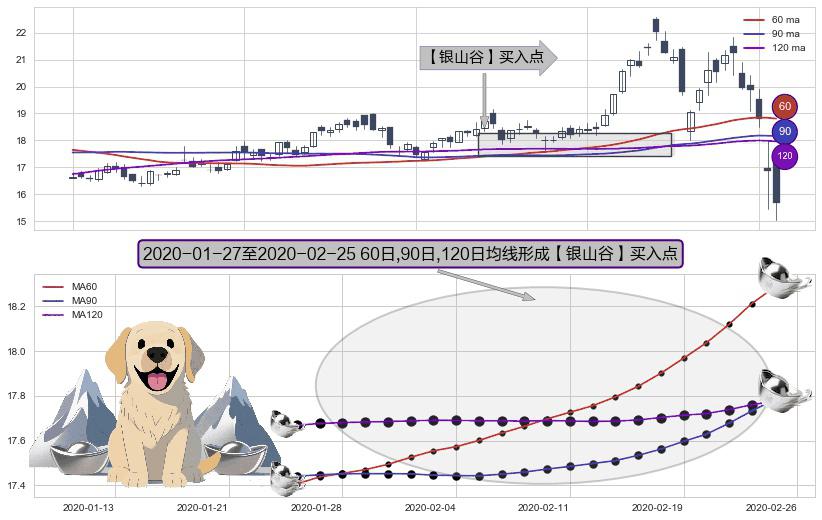 ⚀ 2020-01-28-日至2020-02-25-日显现 60日-90日-120日均线 【银山谷】买入点 看多信号,后市看涨,买入