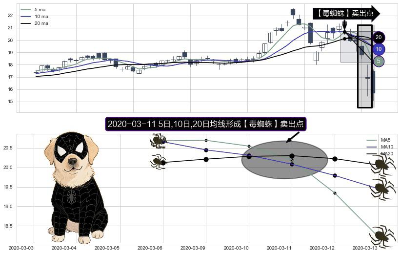 ⚀ 2020-03-11日显现 5日-10日-20日均线 【毒蜘蛛】卖出点 看空信号,后市看跌,卖出
