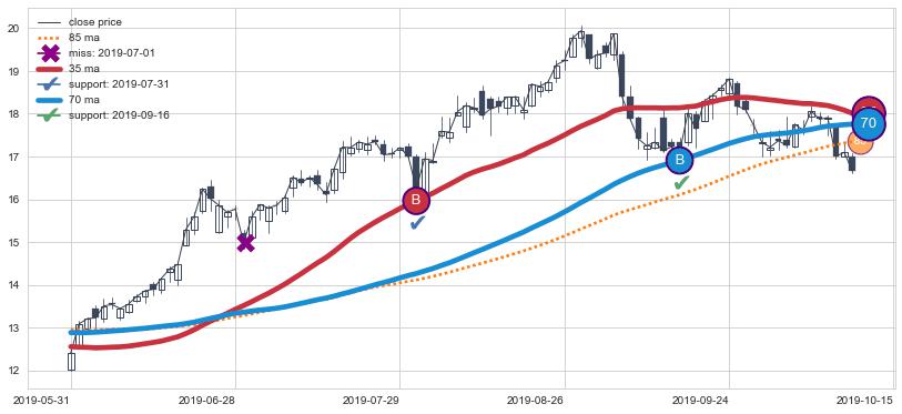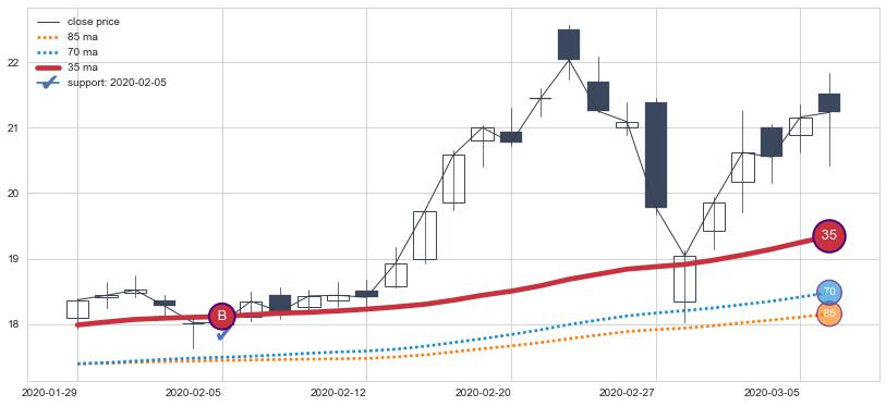 ⚃ 在破位点附近ma走势明显平稳迹象,稍后的走势中ma下垂迹象也出现,信号【可信度中等偏上】