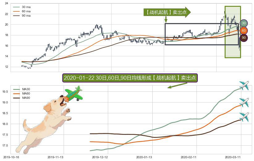 ⚀ 2019-12-02日-2020-03-11日显现 30日-60日-90日均线 【战机起航】卖出点 看空信号,后市看跌,卖出