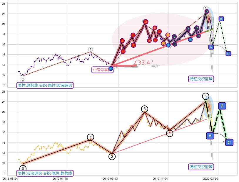 ➣ 2019-05-28-2020-02-24上升趋势存在反转[风险],其原上升趋势的支撑位(18.95)已破位[强阻力信号],原上升趋势角度: 33.4˚