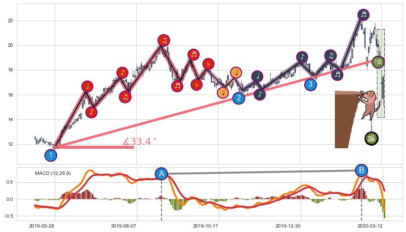 ➣ AI预测: 假定反转启动后, 第❶目标位置(2020-08-13, 16.08)