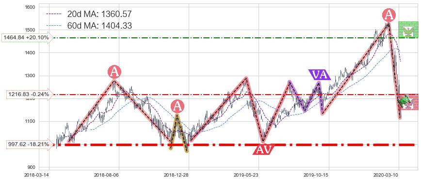 ♘ 支撑价格位997.62,可信任强度99.79%,距离最后交易2020-03-13形成的收盘价格1219.73相差 -18.21%
