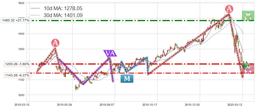 ♘ 支撑价格位1143.28,可信任强度55.66%,距离最后交易2020-03-13形成的收盘价格1219.73相差 -6.27%