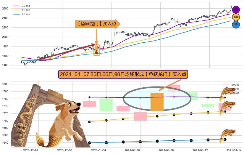 ⚀ 2021-01-07日显现 30日-60日-90日均线 【鱼跃龙门】买入点 看多信号,后市看涨,买入