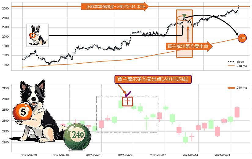 ⚀ 2021-04-29-日显现 葛兰威尔均线 240日均线 第⑤卖出点 上升趋势均值回复的短线回落信号,后市看跌,卖出信号