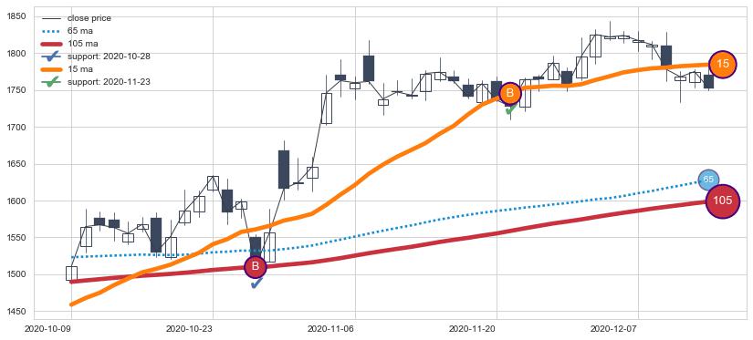 ⚀ 2021-03-24日-2021-07-23日显现 20日-30日-60日均线 【烘云托月】买入点 看多信号,后市看涨,买入