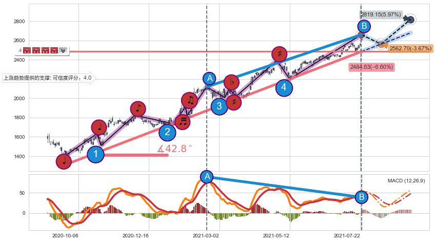 ➢ 预测:2021-08-12,【小幅回撤】稳定目前上涨趋势的前提下,预测价格:2562.70