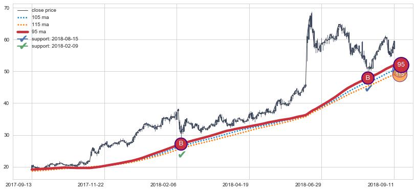 ➢ 最优均线组合共正确确认支撑阻力信号3处,正确确认率 60.00%