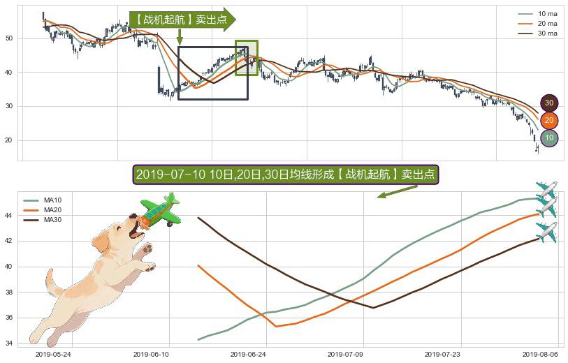 ⚀ 2019-06-13日-2019-08-02日显现 10日-20日-30日均线 【战机起航】卖出点 看空信号,后市看跌,卖出